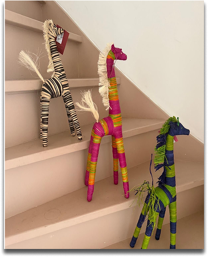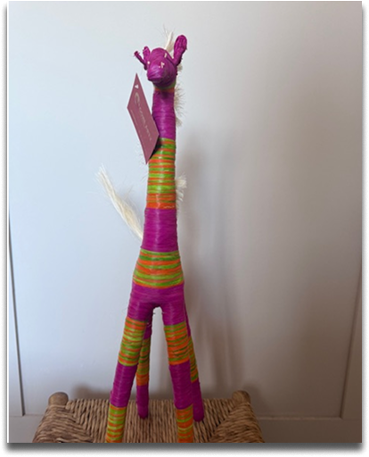 Handgemaakte giraffe van raffia. Een kleurrijk accessoire voor de woonkamer of kinderkamer!