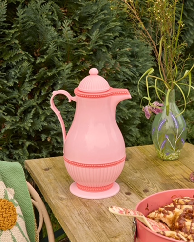De allerleukste roze thermoskan met prachtige koraalkleurige details en een op vintage geïnspireerde vorm. Er past tot 1 liter in en vloeistoffen kunnen er 12 uur lang in warm worden gehouden. Een echte aanrader voor je volgende picknick!