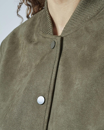 De jas is 100% polyester en heeft een echte suède look.