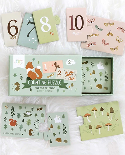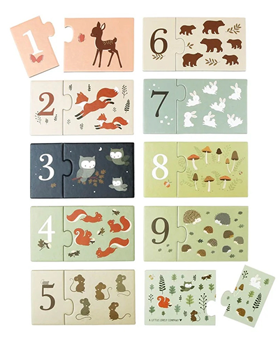 Leer je kinderen op een lovely manier tellen met de Bosvriendjes telpuzzel. De telpuzzel bestaat uit 10 losse puzzels en is geschikt voor kinderen vanaf 2 jaar. Zoek het getal bij het juiste aantal afgebeelde vosjes, hertjes en eekhoorntjes. De puzzelstukken zijn gemaakt van stevig karton zodat kleine handjes er goed mee overweg kunnen gaan. De puzzel wordt geleverd in een handige schuifdoos, zodat hij eenvoudig kan worden opgeborgen.