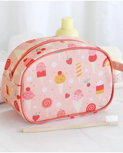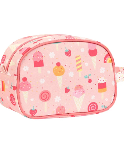 De ruime, roze toilettas met ijsjes is ideaal om mee te nemen op vakantie of naar een logeerpartijtje. De toilettas biedt een ruim vak met voldoende ruimte voor een fles shampoo, tandenborstel, tandpasta en meer. Ook heeft de toilettas een handig handvat om het makkelijk mee te nemen en op te hangen.