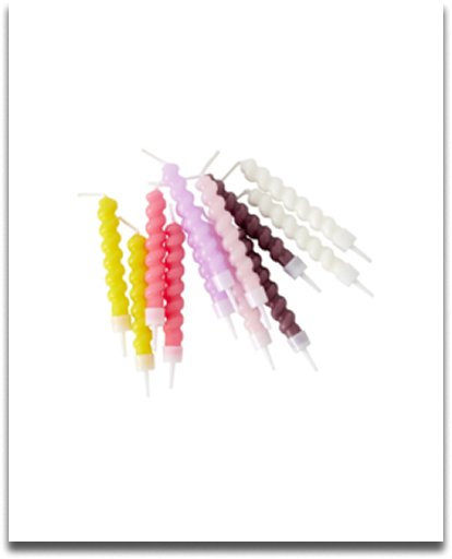 Prachtige en feestelijke gedraaide taartkaarsjes in mooie en stoere kleuren mix. Met deze taartkaarsjes tover jouw taart om tot iets feestelijks. Ze komen in een handig doosje met 12 kaarsjes.